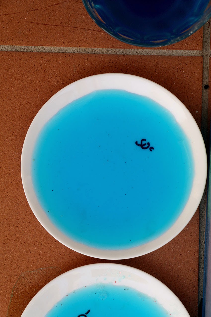 | Ceramic plate with copper sulfate solution- no seed crystal. |